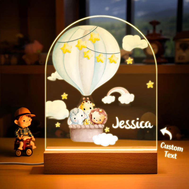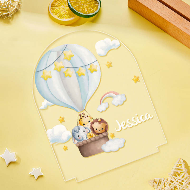 Custom Animals In Hot Air Balloon Name Light Personalized Star and Cloud Night light Kids Gift