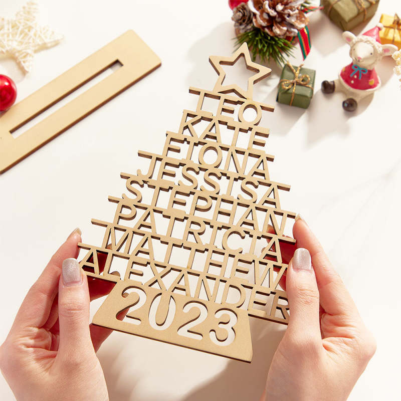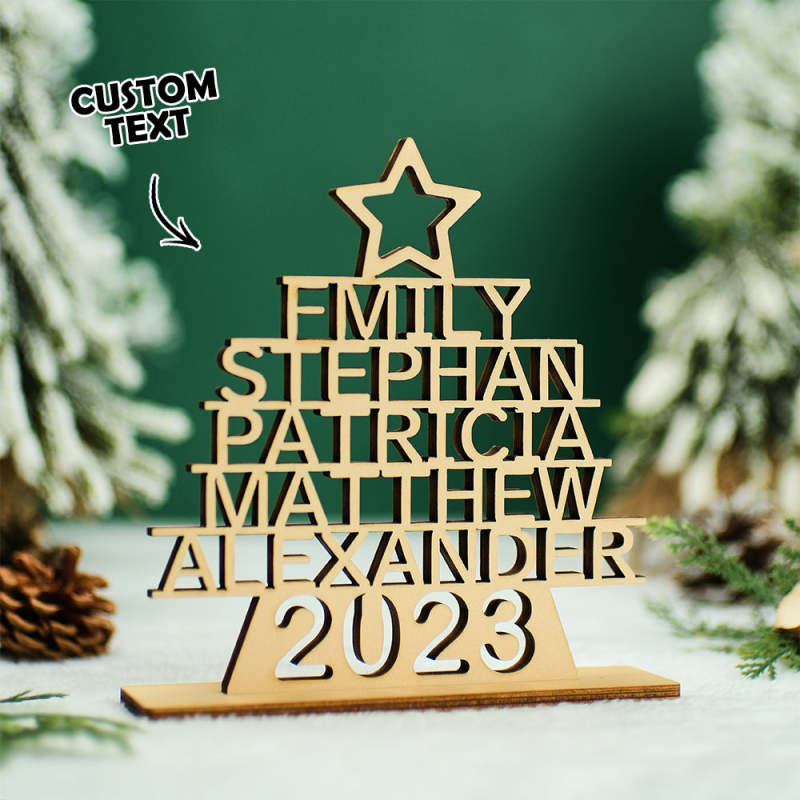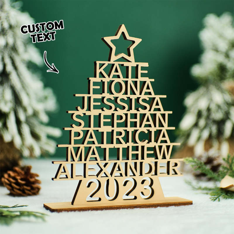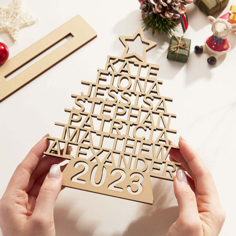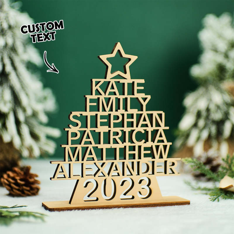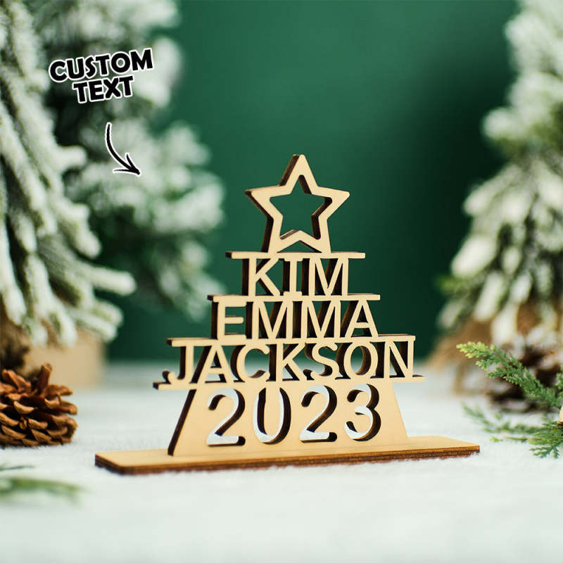 Custom Family Names Christmas Tree Wooden Decor Personalised Warm Gifts For Christmas Day