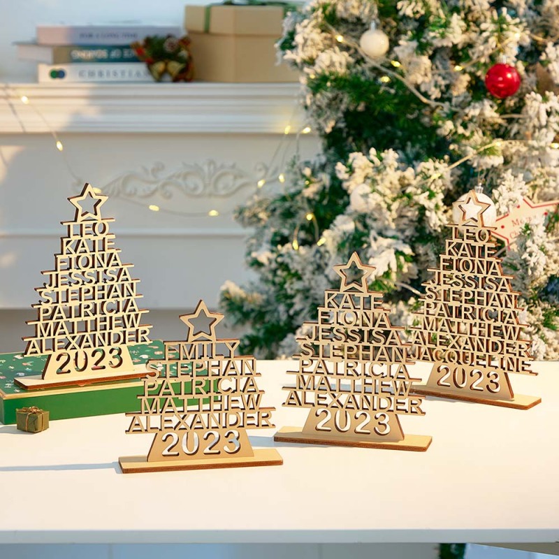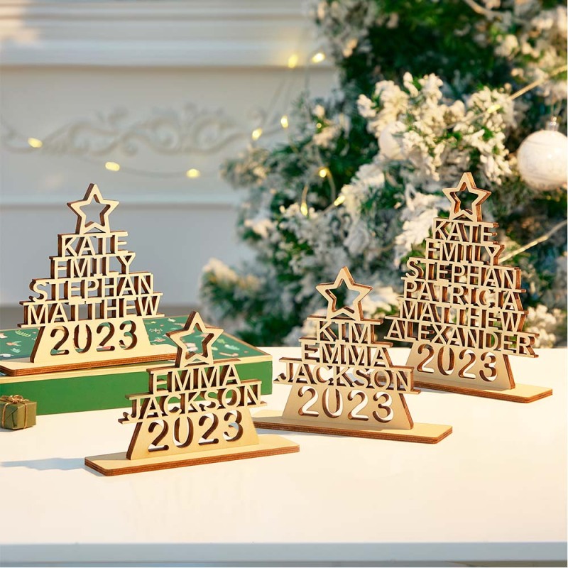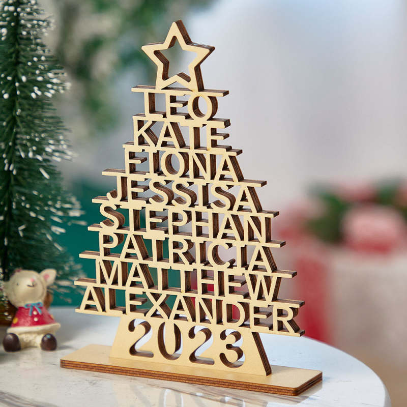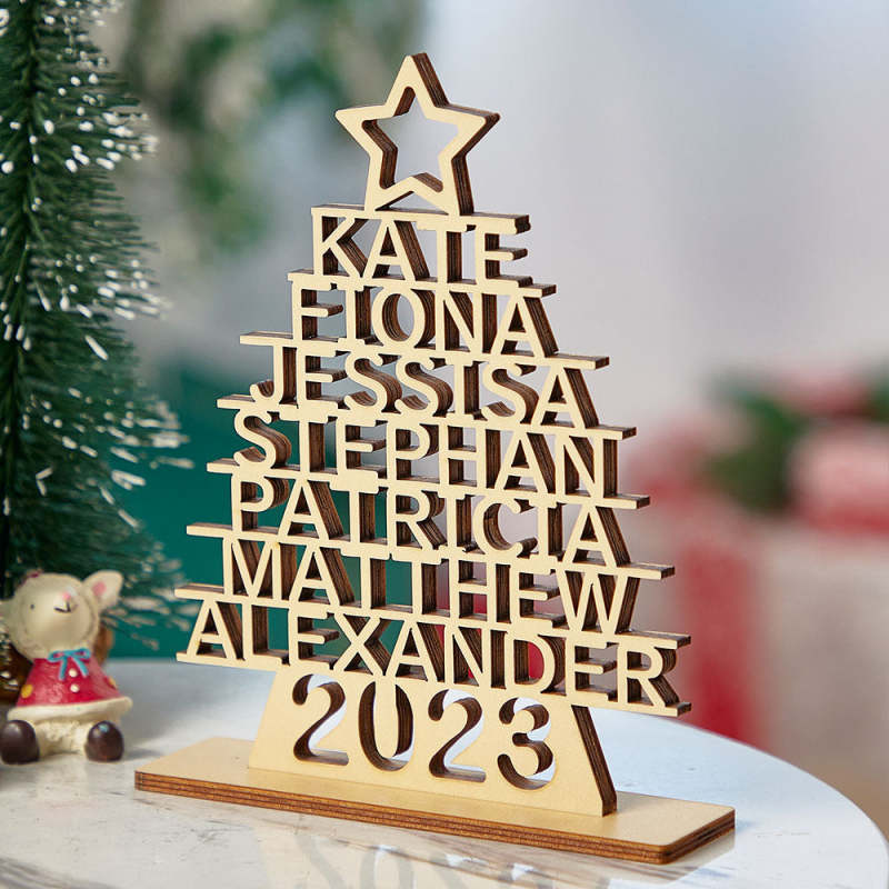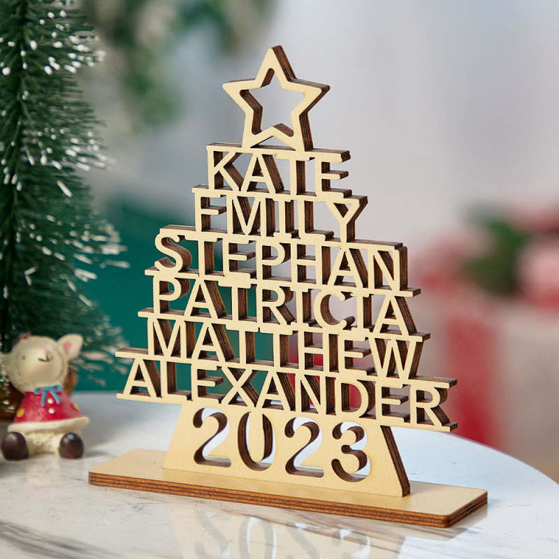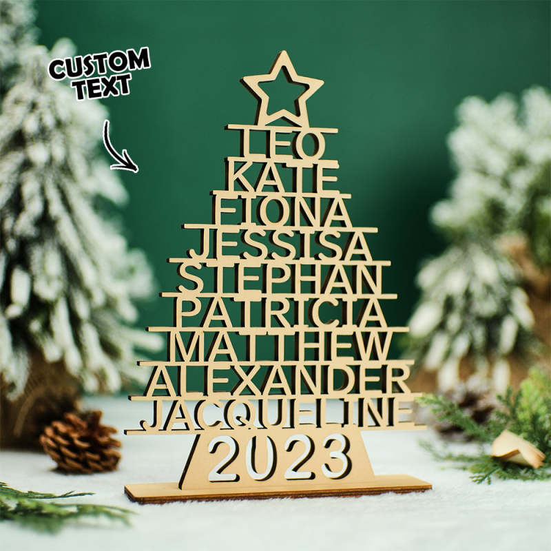 Custom Family Names Christmas Tree Wooden Decor Personalised Warm Gifts For Christmas Day