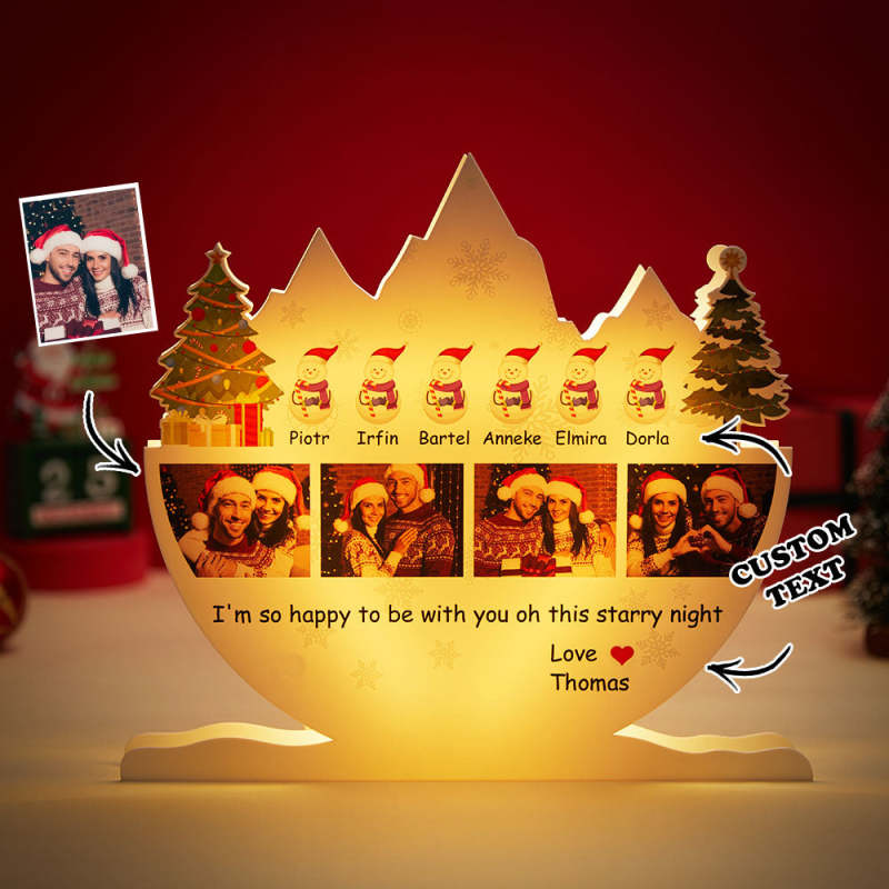 Custom Photo Christmas Lamp with Personalized Name Snowman Family Light Home Decor Christmas Gifts