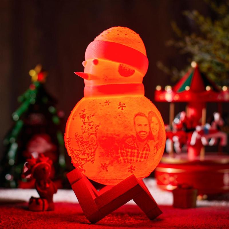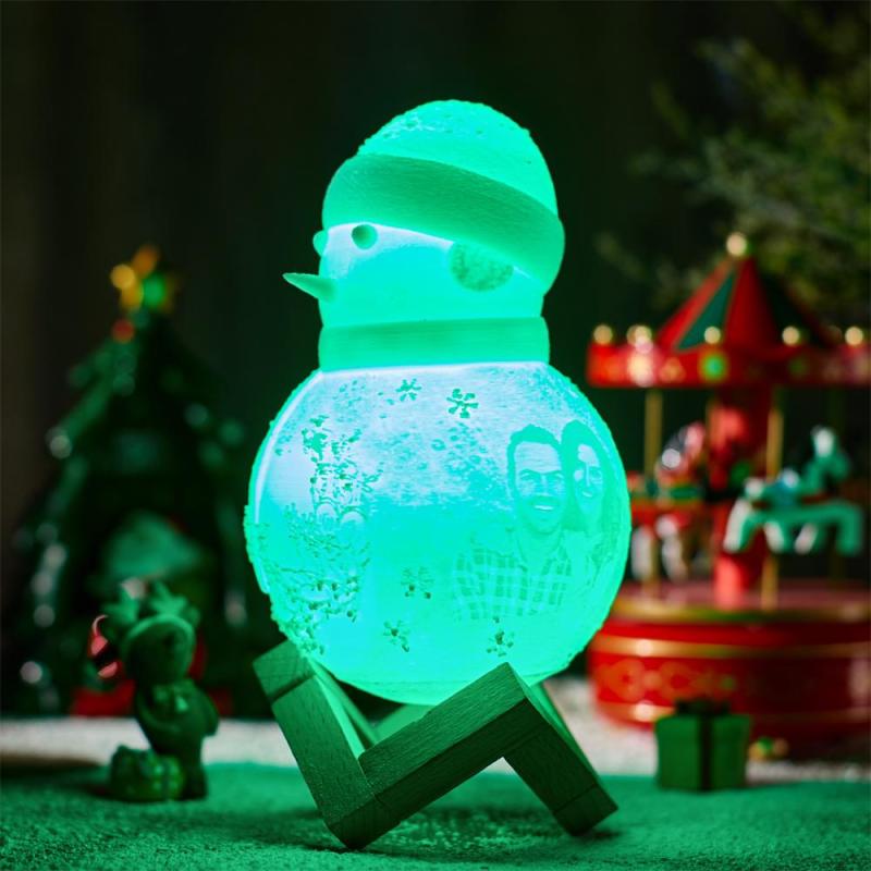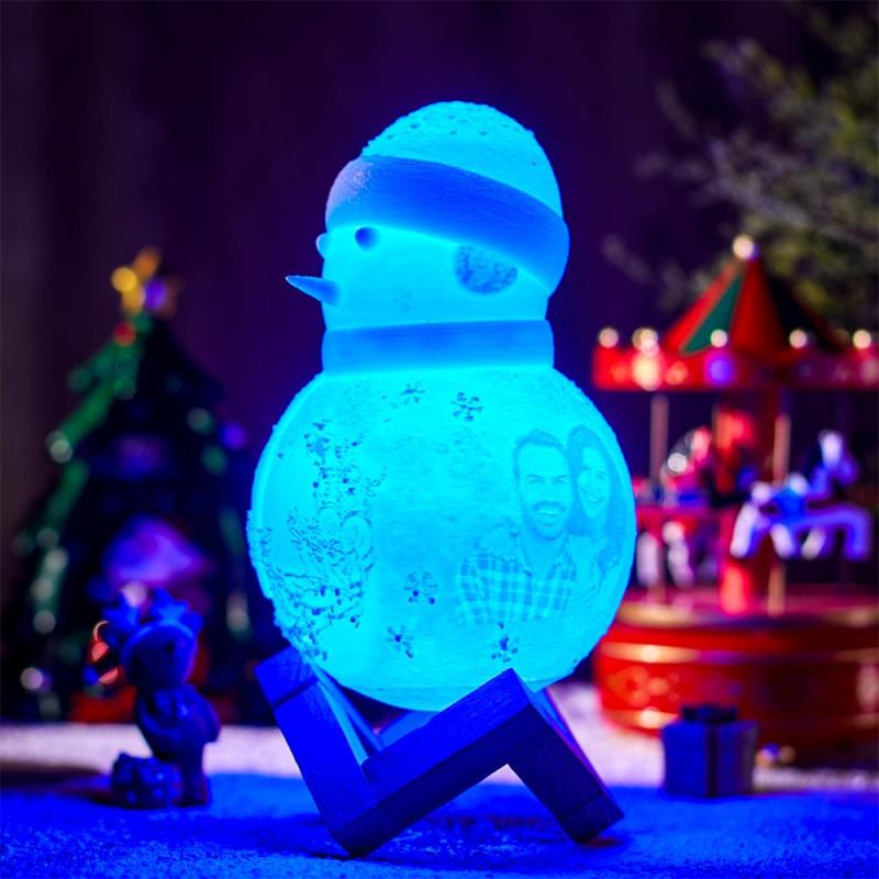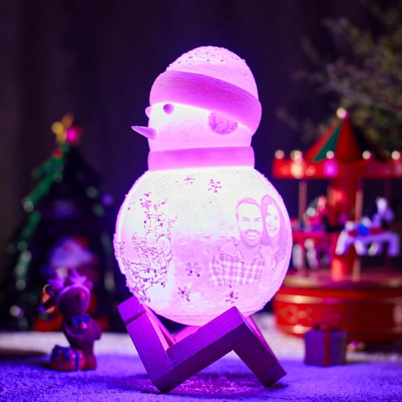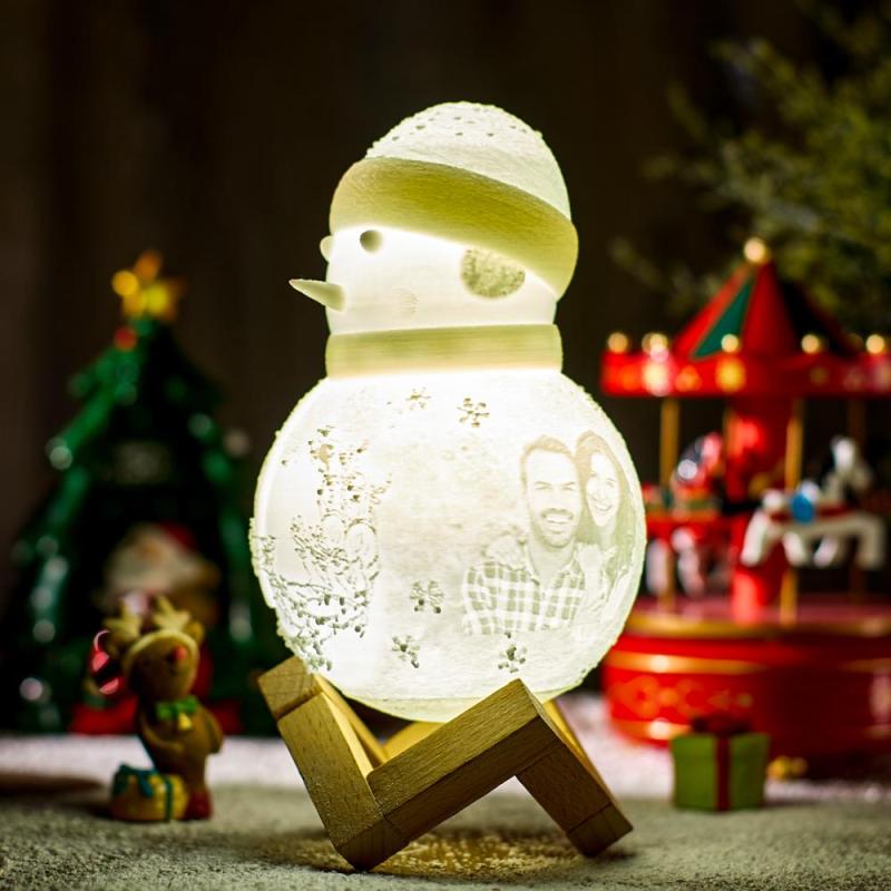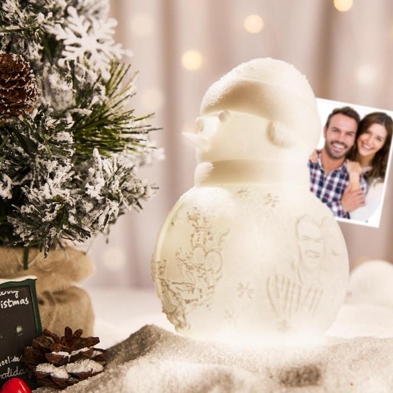 Custom Photo Engraved Night Light Snowman Lamp for Lover