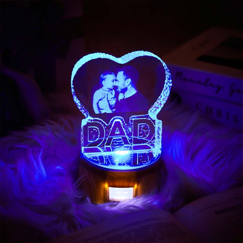 Custom Photo Lamp Heart Shaped Crystal Lamp Gift for Father