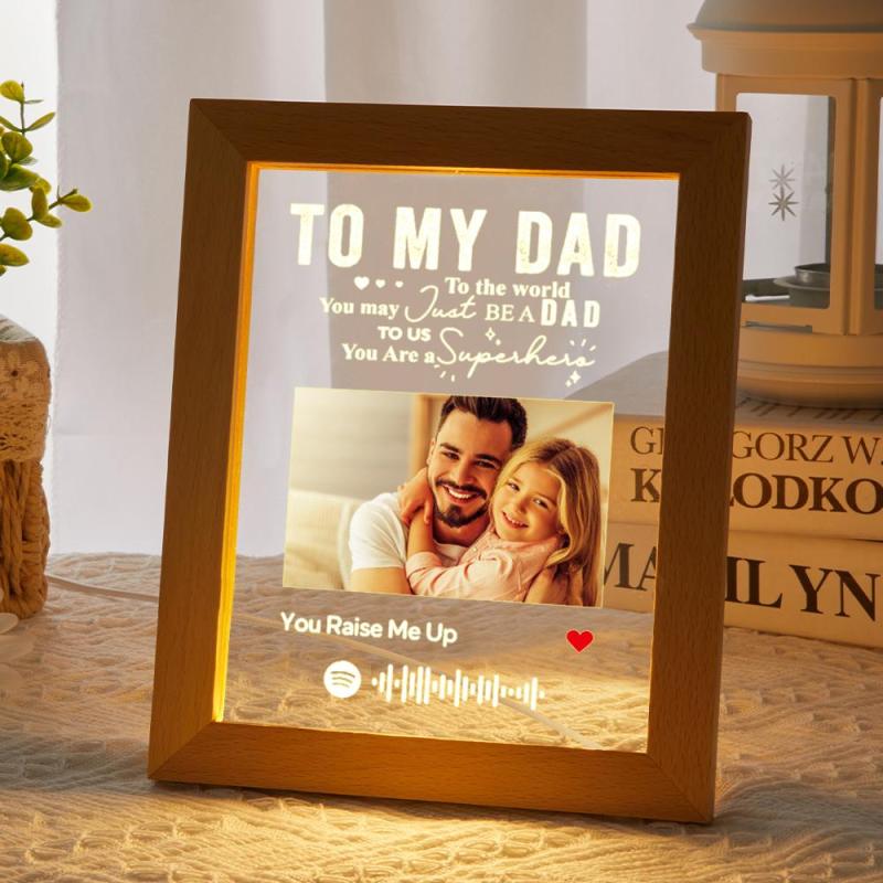 Personalised Spotify Photo Engraved Photo Frame LED Night Lamp Best Dad Ever Gift for Dad