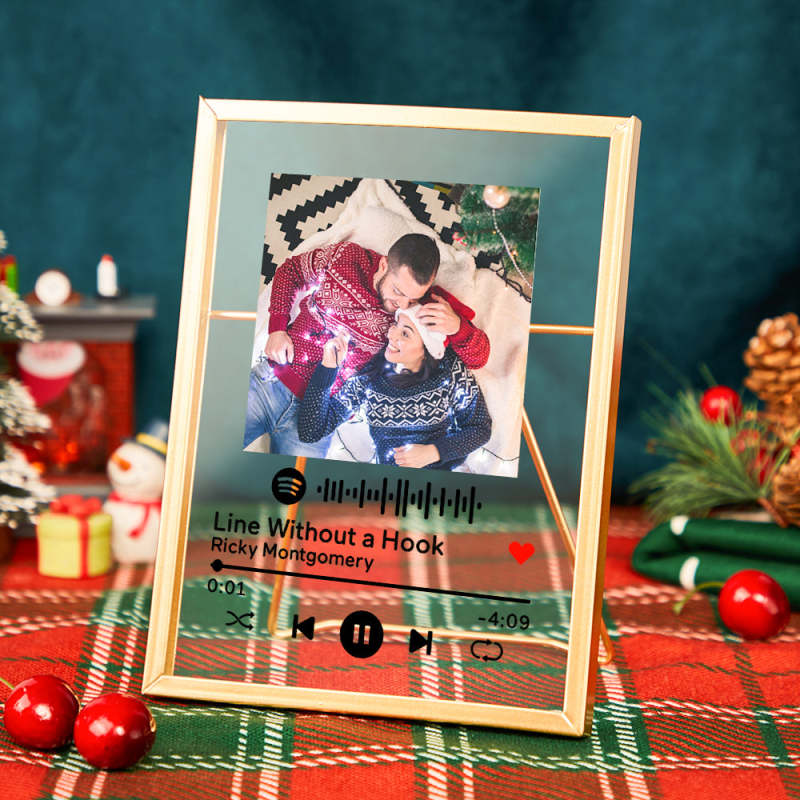 Personalised Spotify Code Music Plaque Glass Art for Dad Spotify Plaque with Golden Frame