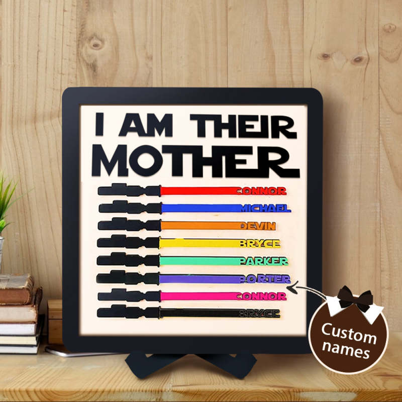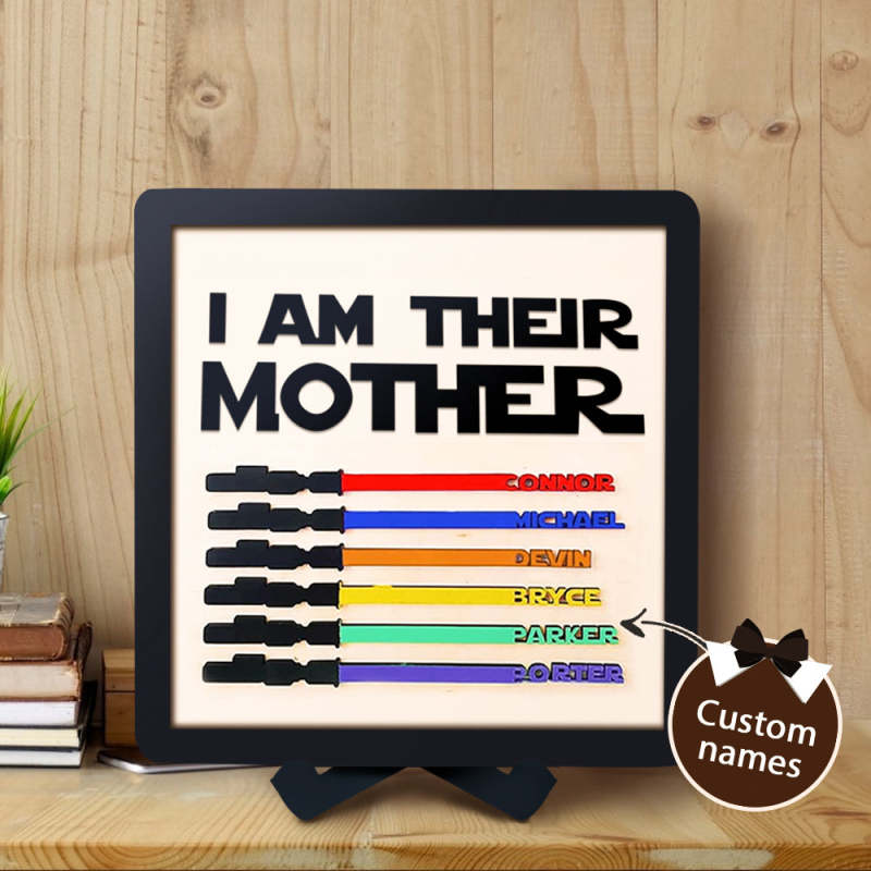 Personalized Light Saber I Am Their Mother Wooden Sign Gift for Mom