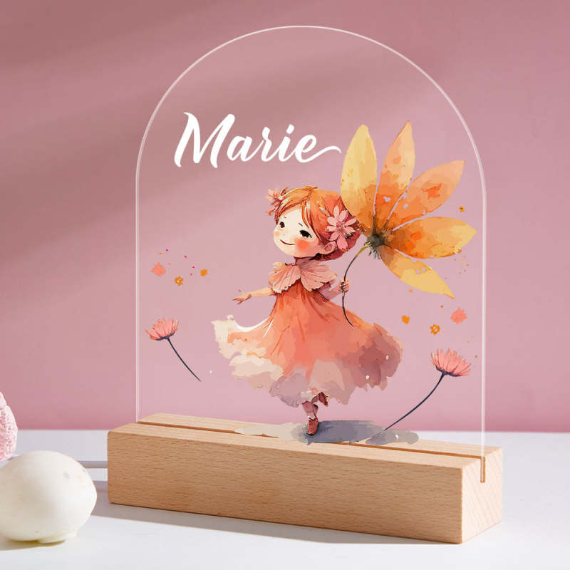 Personalized Name Baby Fairy Night Light Custom Name Flower Fairy Nursery Room Lamp Gift For Kids