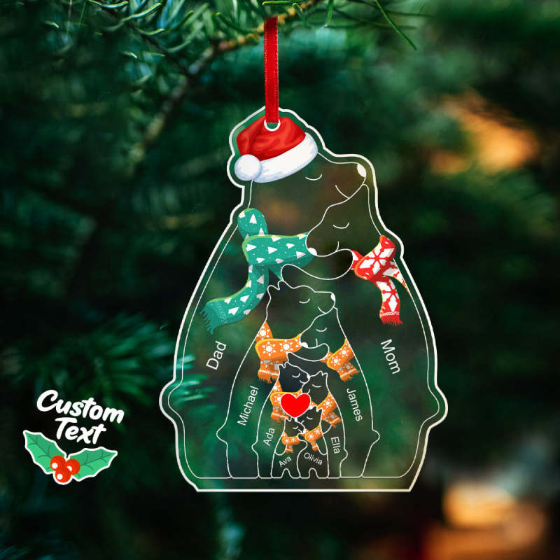 Personalised Names Christmas Bear Family Acrylic Ornament Custom Christmas Keepsake Ornament Christmas Gift Decor