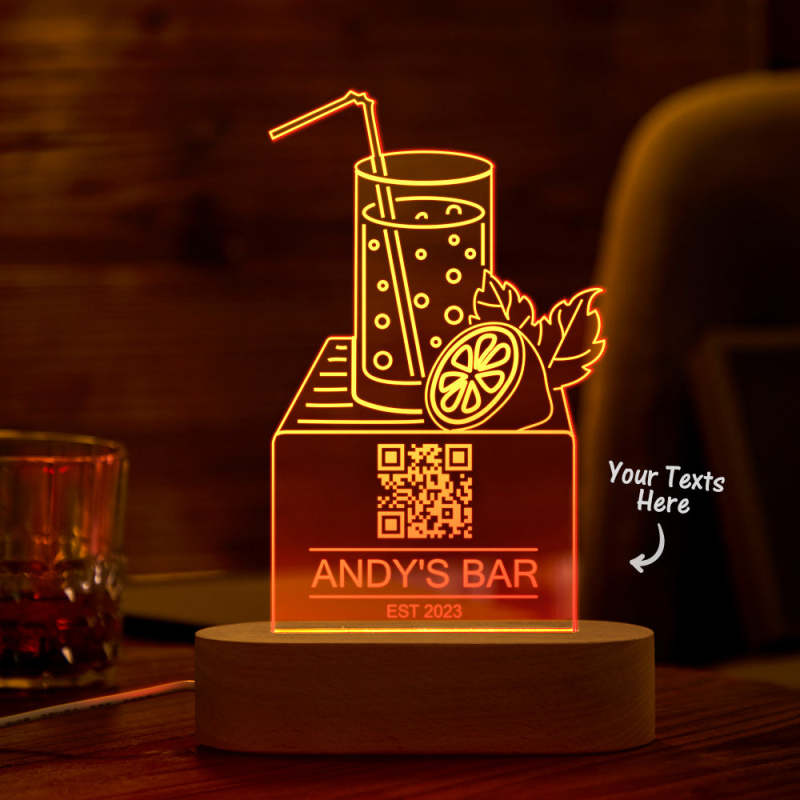 Personalized Qr Code Lemon Juice Night Light 7 Colors Acrylic 3D Lamp Father's Day Gifts