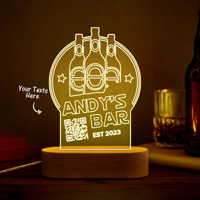 Personalized Qr Code Wine Bottle Night Light 7 Colors Acrylic 3D Lamp Father's Day Gifts