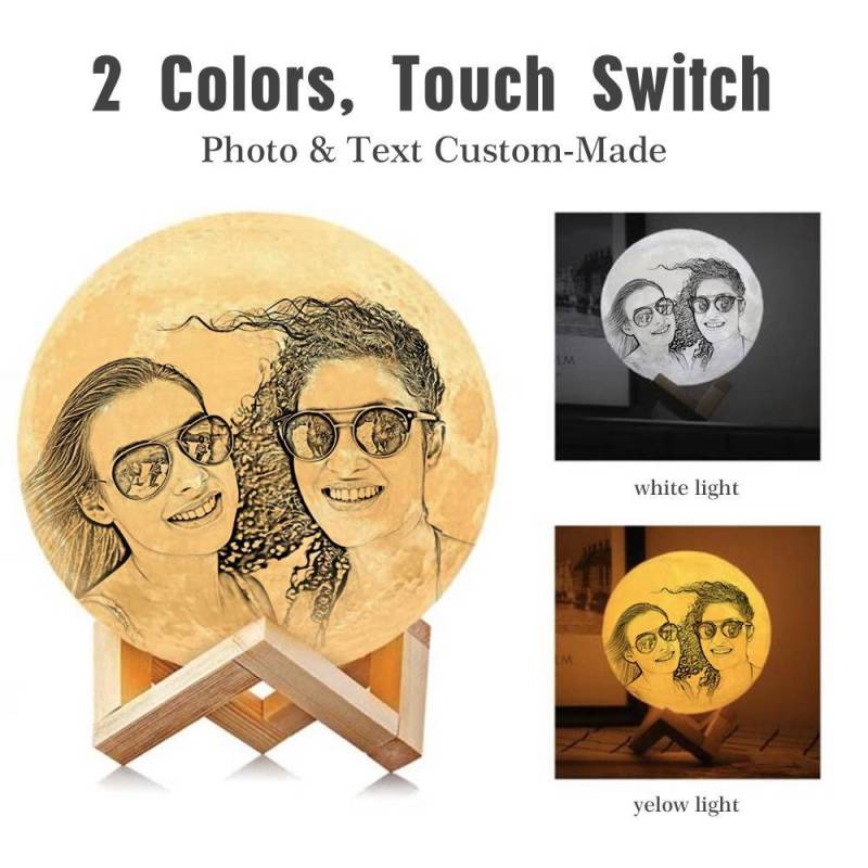 Custom 3D Printing Photo Moon Light With Your Text-Touch Two Colors(10-15cm)