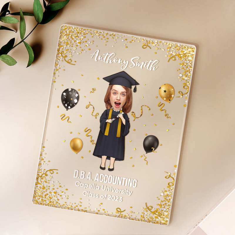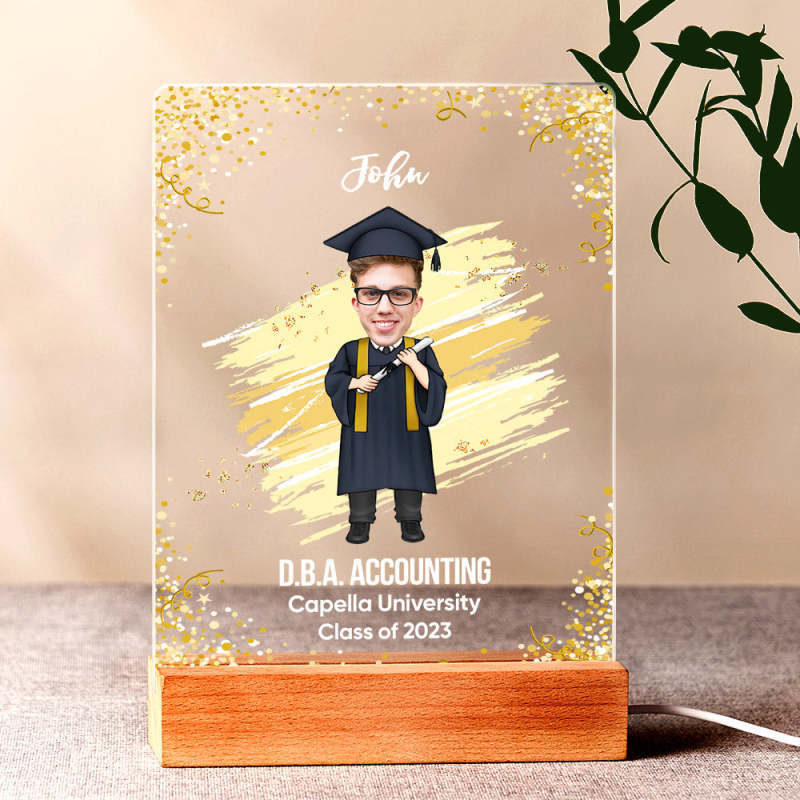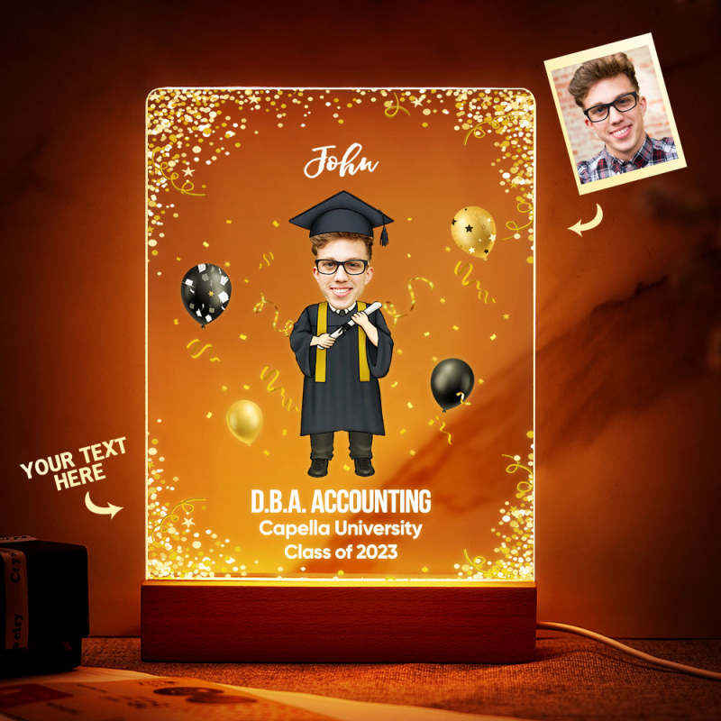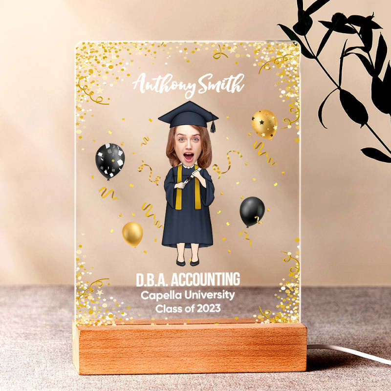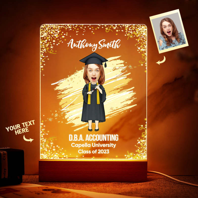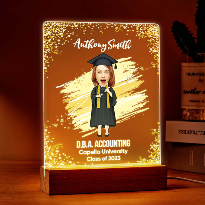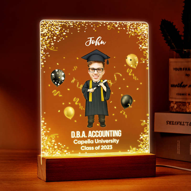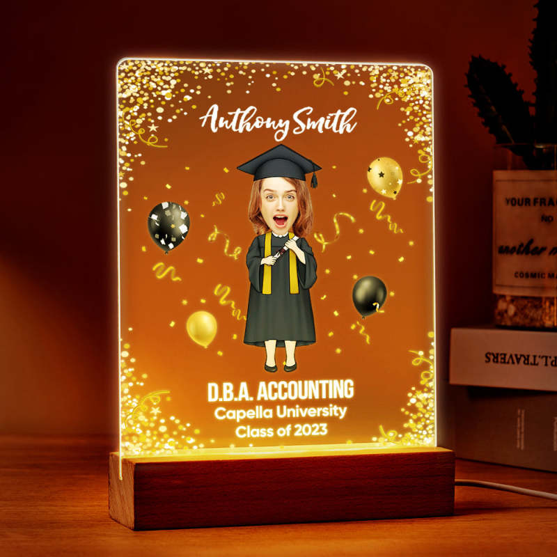 Graduation Ceremony Gift Custom Photo Graduation Appreciation Acrylic Plaque Lamp Personalized Your Name, Diploma And School