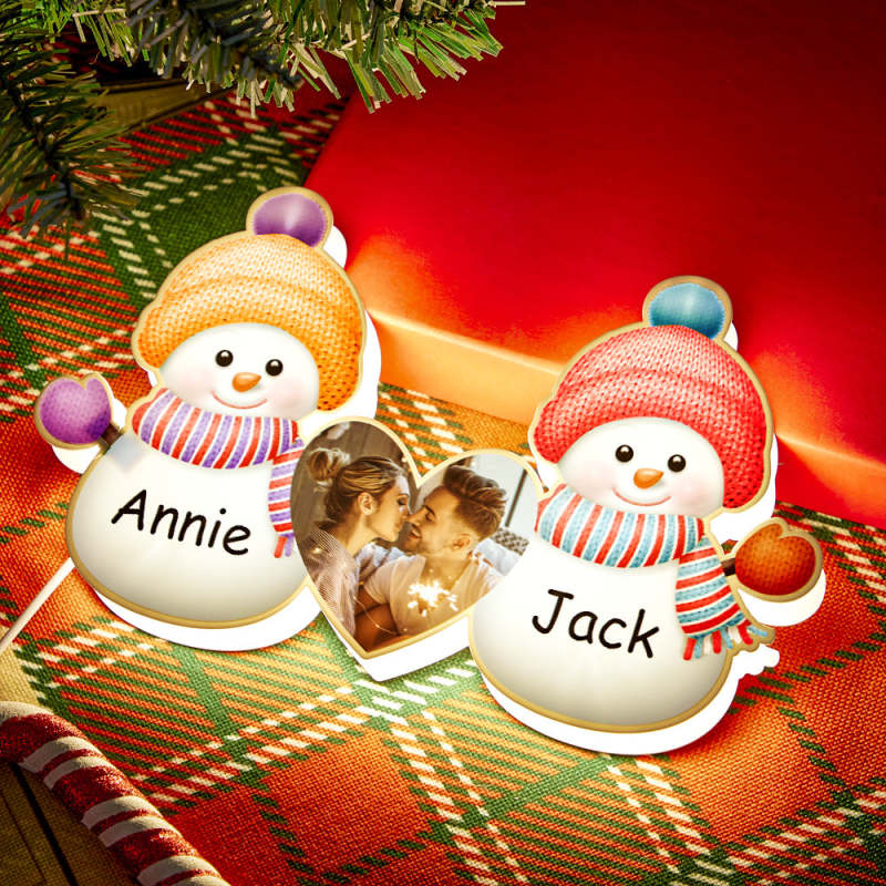 Personalized Photo Engraving Your Name Christmas Snowman Night Lights